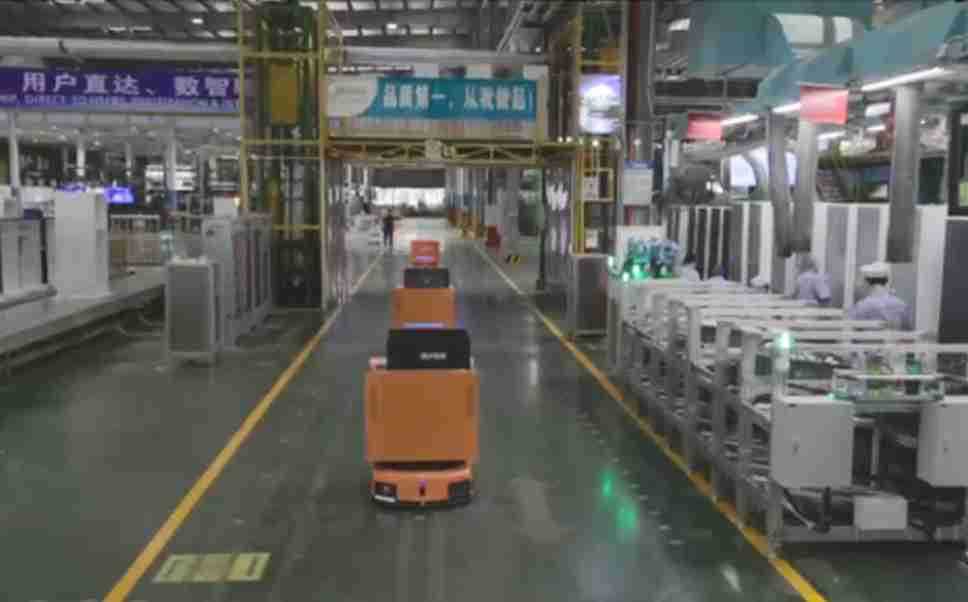 为车载冰箱物流配送打造的智能解决方案,,包含产中物流通过潜伏举升AMR搬运至线边,,,,产后成品物流智能仓储,,,流程包含产中物流智能齐套入库,,,,线边安灯叫料AMR智能配送至线边,,,成品入库、、出库,,,,通过无人堆高车机器人,,智能仓储管理替代人工作业管理,,,实现更高存储、、更高效率、、、更具柔性化的解决方案。。。